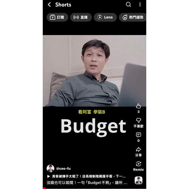 看看影片裡這種人,明明沒錢,卻硬要夾雜幾個英文單字裝高級。「這個專案的 Budget 不夠...」、「我們的 Budget 有考量...」。