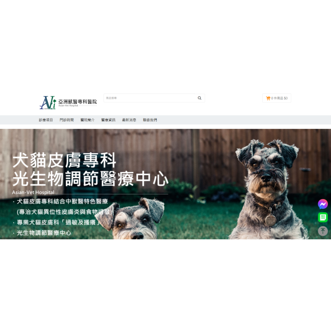 新亞洲動物醫院網站,使用 iSmart Ai開店系統,自行生成專業內容,帶來更完整的品牌形象,同時提升流量、詢問度與線上曝光,並逐步建立「寵物推薦皮膚科醫院」的專業印象。