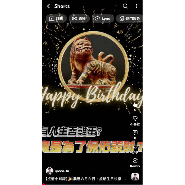 在最新的影片中,適逢農曆六月六日虎爺生日,我特地準備了「LV級機能紅仁雞蛋」來孝敬這位守護神。大家知道嗎?虎爺通常供奉在神桌下,是武財神趙公明的腳力,因為形象兇猛,所以被視為最強的守護者**,能鎮宅、咬錢、招財。